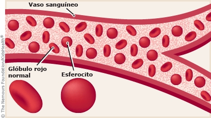 La esferocitosis hereditaria es una afección de la sangre que se da por familias (pasa de padres a hijos). Ocurre debido a que los glóbulos rojos son redondos en forma de esfera y no en forma de disco. Estos glóbulos rojos (llamados "esferocitos") son frágiles y se traban dentro del bazo. Esto causa anemia, agrandamiento del bazo y otros problemas médicos. El tratamiento puede ayudar a su hijo a llevar una vida sana y activa.