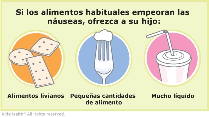 Las náuseas son la sensación de malestar en el estómago. Los niños de cualquier edad pueden padecer náuseas. En general, esta sensación aparece antes de vomitar. Casi nunca es grave y suele desaparecer en unos días.