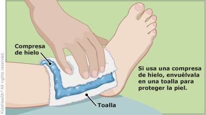 - Colocar una compresa fría envuelta en una toalla sobre la zona afectada durante 15 a 20 minutos varias veces al día durante los primeros días después de una lesión. Ponga una toalla o un paño entre la compresa y la piel.