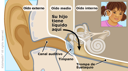 Los niños pueden tener líquido en el oído medio (efusión del oído medio) después de una infección de oído o cuando el tubo (la trompa de Eustaquio) que drena el líquido del oído medio a la garganta está bloqueado.