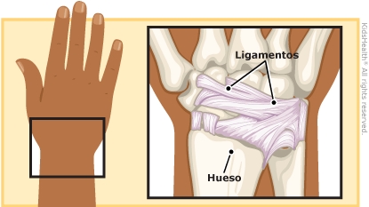 Los esguinces ocurren cuando un ligamento se estira o se desgarra. Los ligamentos son bandas de tejido elástico que conectan los huesos entre sí. Un esguince de muñeca generalmente ocurre cuando la muñeca se tuerce o se dobla demasiado, generalmente por caer sobre una mano extendida.