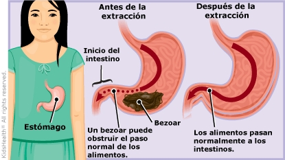 Los profesionales del cuidado de la salud eliminan ciertos bezoares pasando una cámara a través de la boca del paciente hasta el estómago (lo que se denomina "endoscopia"), pero otros bezoares deben eliminarse mediante una cirugía. El profesional del cuidado de la salud utilizó el método que consideró mejor para su hijo.