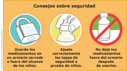 - Mantenga los suplementos y los medicamentos (incluso aquellos que puede comprar sin receta) en un gabinete cerrado con llave, fuera del alcance de los niños.