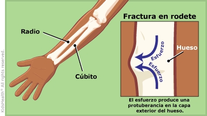 ¿Por qué los niños sufren fracturas en rodete? Los huesos de los niños todavía están creciendo y no son tan duros como los de los adultos. Cuando los niños estiran los brazos para detener una caída, la presión que recibe el hueso produce una protuberancia en la capa externa del hueso.