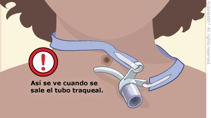 El equipo de atención de su hijo le mostró cómo cuidar el tubo traqueal de su hijo y qué hacer si se presentara una emergencia, como sustituir el tubo inmediatamente cuando se sale.