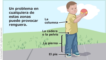 Los niños renguean (caminan moviéndose de un lado a otro) debido al dolor o la debilidad en la espalda, la cadera, la pierna o el pie. En general, la causa de la renguera no es grave. Suele mejorar sin ningún tratamiento específico. Siga esas instrucciones para mantener a su hijo cómodo mientras se cura.