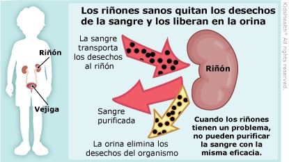 ¿Qué ocurre en la glomerulonefritis postestreptocócica? Dentro de los riñones, hay unos pequeños ovillos de vasos sanguíneos llamados glomérulos. Limpian la sangre y eliminan los desechos y el agua sobrante, que acaba saliendo del cuerpo en forma de orina (pis). Entre 1 y 3 semanas después de algunas infecciones de garganta o de piel provocadas por estreptococos, los glomérulos se pueden inflamar y quedar irritados. Dejan de funcionar bien, y pueden dejar pasar sangre y proteínas a la orina. Y es posible que los riñones no sean capaces de eliminar parte de la orina. Cuando ocurre esto, el agua se puede escapar de los vasos sanguíneos y empapar los tejidos del cuerpo. Esto causa hinchazón en la cara, el vientre, las manos y los pies.