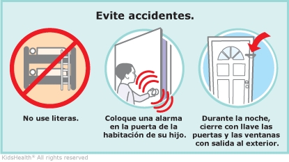 - Considere la posibilidad de colocar una valla de seguridad en la puerta de la habitación de su hijo o de instalar una alarma que se active cuando su hijo abra la puerta de su habitación.