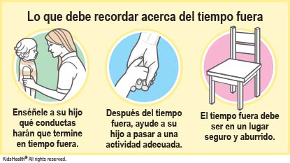 ¿Qué debo hacer si el tiempo fuera no está funcionando? El tiempo fuera funciona con muchos niños, pero algunos de ellos no logran calmarse con el tiempo fuera. Recuerde que usted es quien mejor conoce a su hijo. Si parece que el tiempo fuera no funciona, hable con el profesional del cuidado de la salud sobre otras formas de enseñarle a calmarse y pasar a tener un comportamiento aceptable.