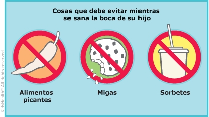 - Su hijo se debe cepillar los dientes como de costumbre. Ayude a su hijo a evitar la zona que hay alrededor del desgarro.