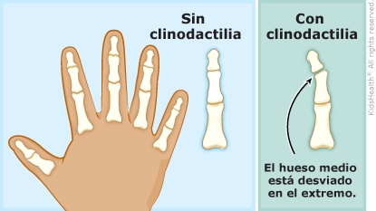 La clinodactilia es la curvatura lateral de uno o más dedos de la mano. Está presente en el momento del nacimiento. En general, la clinodactilia no causa problemas ni necesita tratamiento.