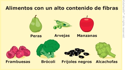La fibra es la parte del alimento que el cuerpo no digiere (descompone). Las frutas, las verduras, los cereales integrales y las legumbres son buenas fuentes de fibra.