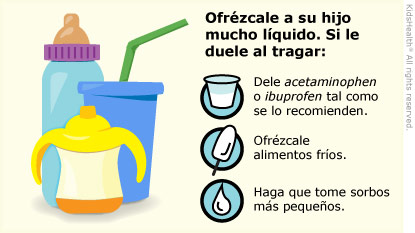 La herpangina es una infección causada por diferentes tipos de virus. Los niños con herpangina tienen llagas en el paladar y en la garganta. Las llagas les pueden doler, de modo que los niños pueden no querer comer ni beber. Esto puede conducir a una deshidratación (cantidad insuficiente de agua en el cuerpo). Usted puede ayudar a su hijo a sentirse mejor hasta que se le curen las llagas.