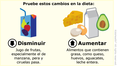 También puede ocurrir cuando los niños pequeños toman demasiado jugo de frutas, bebidas deportivas y otras bebidas endulzadas. A veces, comienza después de que el niño tiene una infección. En algunos niños, la causa de la diarrea puede ser una dieta con un bajo contenido de grasa o de fibra.