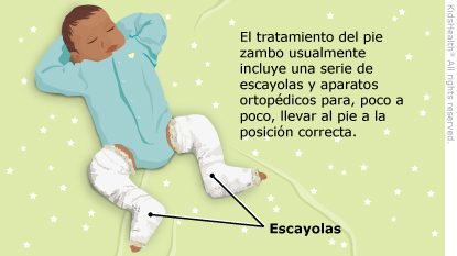 El pie zambo es cuando uno o ambos pies de un bebé giran hacia adentro y hacia abajo. Para tratar a los niños con pie zambo, los cirujanos ortopédicos utilizan una serie de escayolas, movimientos y estiramientos suaves del pie y un aparato ortopédico para mover lentamente el pie a la posición correcta. A este tratamiento se lo llama "método Ponseti". Con tratamiento, los bebés con pie zambo suelen crecer y tener vidas normales y activas. He aquí alguna información sobre el tratamiento.