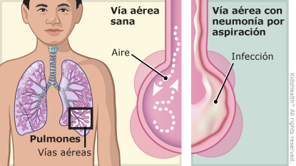 La neumonía por aspiración es una infección de los pulmones. Ocurre cuando algo ajeno a los pulmones entra en ellos. Los niños con una neumonía por aspiración pueden tener fiebre, tos, dolor en el pecho y dificultad para respirar.