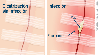 - muestra señales de infección a lo largo de la herida (enrojecimiento, inflamación o supuración)