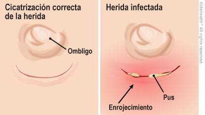 ¿Le quedará una cicatriz a mi hijo? Habrá una pequeña cicatriz debajo del ombligo. En el transcurso del siguiente año, se volverá más blanda y será menos visible. Protéjala del sol con la ropa o pantalla solar.