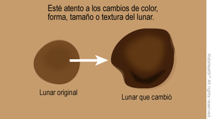 Los lunares son crecimientos en la piel. Suelen ser marrones (claros u oscuros) o negros. Pueden ser pequeños o grandes, y planos o prominentes. Algunos lunares desaparecen por sí solos o se aclaran a medida que el niño crece. La mayoría de los lunares no generan problemas, pero debe estar atento a cualquier cambio que presenten.