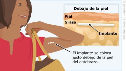 El implante anticonceptivo contiene hormonas que previenen el embarazo. Cuando se lo usa correctamente, es un método confiable de control de la natalidad.